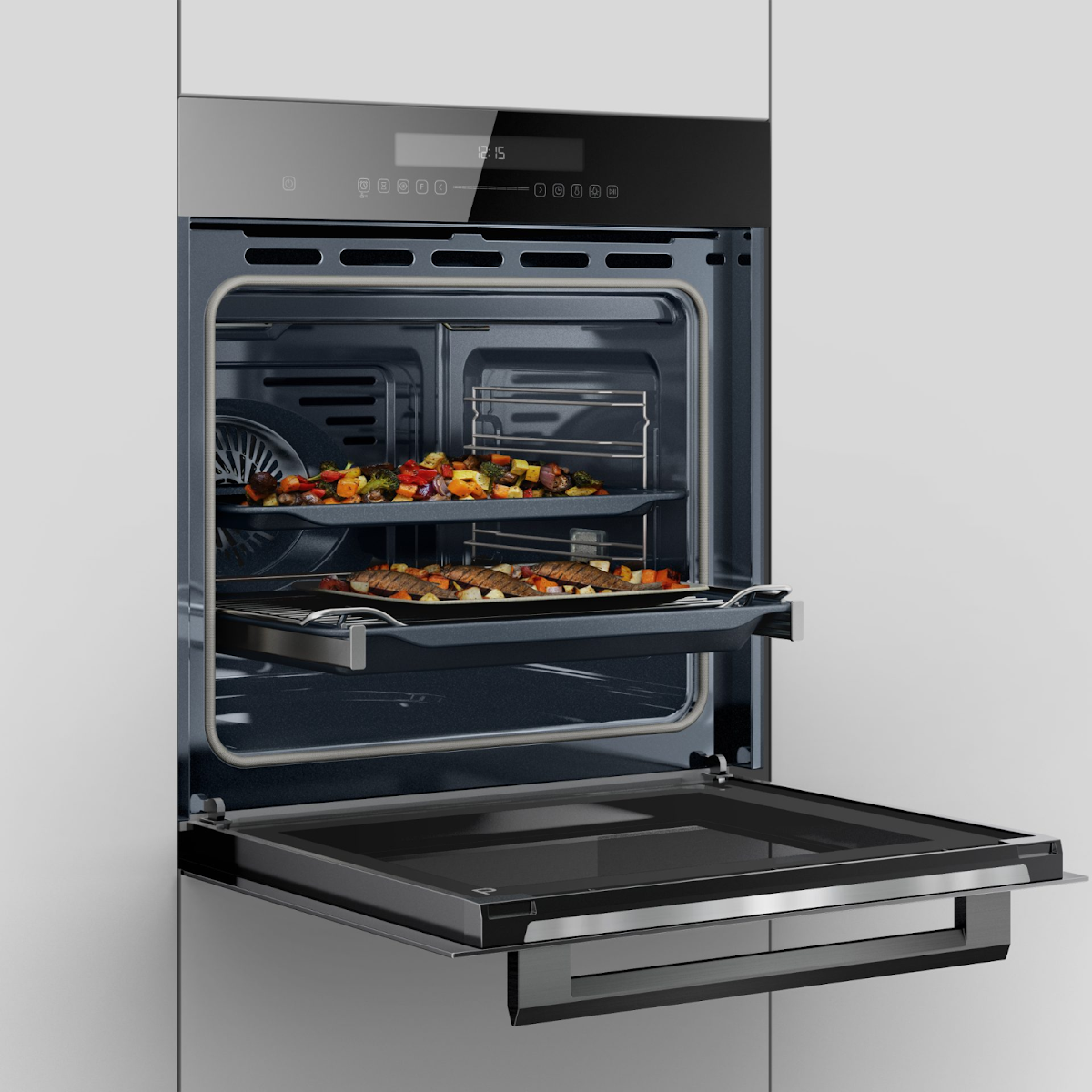 - نوع در فر: 3 جداره با لولا آرام بند، جهت باز شدن به سمت جلو، با سیستم آرام بند