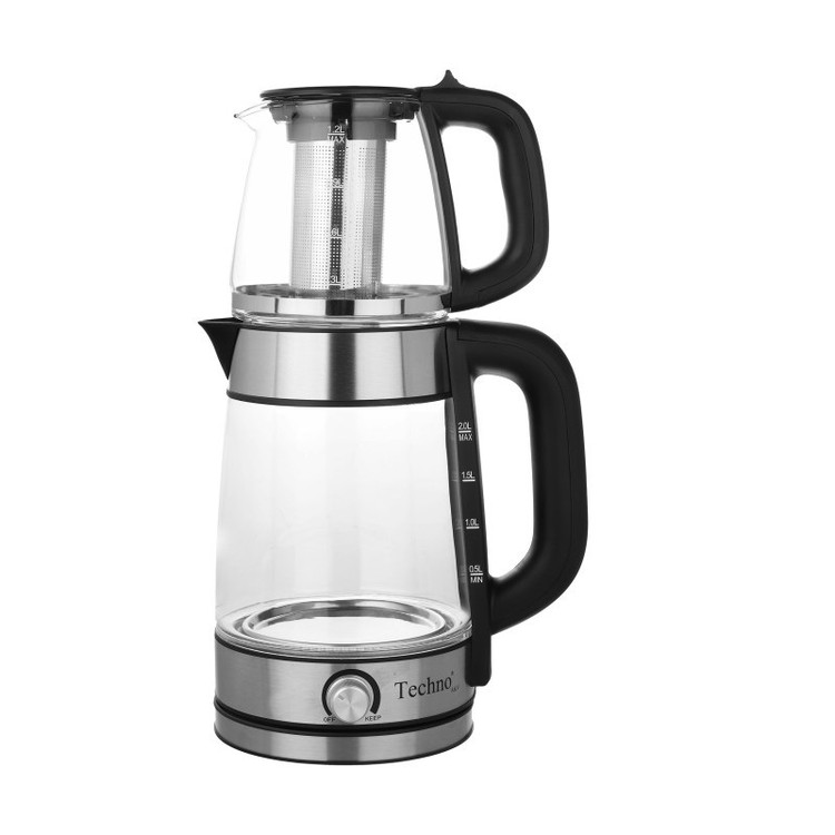 مشاهده محصولات مرتبطچای سازها از جمله وسیلههای بسیار مهم برای دفترهای کاری و همچنین منزل هستند. این وسیله در کوتاهترین زمان ممکن آب را به جوش میآورد و برای افرادی که زمان کافی و صبوری برای به جوش آمدن آب را ندارند، میتواند بسیار مفید باشد. چای ساز تکنو مدل Te-916 شامل یک قوری و یک کتری است که روی هم به صورت ایستاده قرار میگیرند. جنس هر دوی این وسیلهها از شیشه بوده، دارای دستگیره پلاستیکی هستند و یک پوشش استیل از آنها محافظت میکند. حجمی که این کتری میتواند آب را در خود جای دهد در حدود 2 لیتر است. قوری 1.2 لیتر گنجایش داشته و دارای یک توری از جنس استیل است که چای را نگه میدارد. این چای ساز یک پایه دارد که روی آن پیچی تعبیه شده و به وسیله این پیچ میتوان چای ساز را روشن و خاموش کرد. همچنین این دستگاه دارای صفحه گرمنگهدارنده است که پس از جوش آمدن آب، در صورت فعال کردن آن، آب گرم باقی مانده و سرد نخواهد شد.