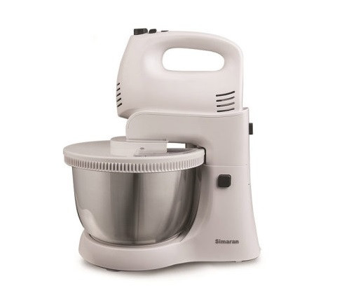 همزن کاسه دار سیماران مدل SHM-422 با قدرت 300 وات و طراحی شیک و مدرن دستگاهی کاربردی و مناسب برای مصارف خانگی می باشد. بدنه دستگاه با طراحی ارگونومیک و سبک از جنس پلاستیک بوده و دارای 5 سرعت قابل تنظیم توسط ولوم تعبیه شده روی دسته و کلید عملکرد توربو است که با فشردن دکمه مربوطه عمل می کند. درپوش کاسه استیل این دستگاه از بیرون ریختن مواد هنگام کار جلوگیری خواهد کرد. همزن کاسه دار 422 سیماران به گونه ای طراحی شده که در هر دو حالت دستی و متصل به پایه همراه با کاسه قابل استفاده می باشد. امکان چرخش کاسه هنگام کارکرد موجب مخلوط شدن یکدست مواد غذایی می گردد. این همزن را می توان با دو جفت سری فلزی همزن و خمیر زن برای تهیه انواع خامه و خمیر استفاده کرد که این سری ها به راحتی با فشردن دکمه رهاسازی EJECT قابل جداسازی از بدنه هستند. برای جداسازی همزن و کاسه از پایه نگهدارنده یک دکمه رها سازی روی پایه تعبیه شده که به آسانی با فشردن آن صورت می گیرد.